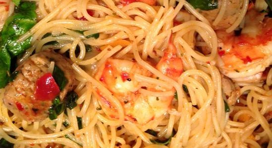 --Boil angel hair pasta in pot